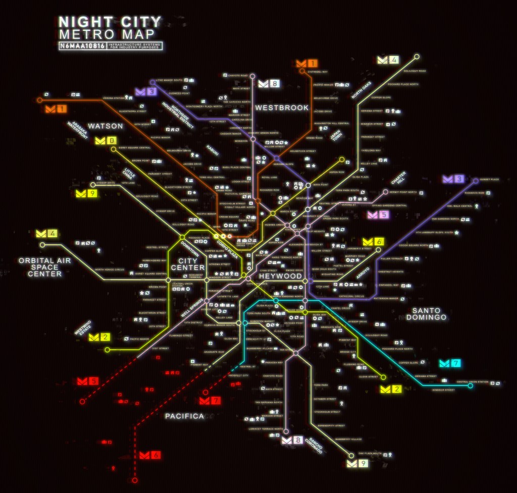 Es el mapa de la ciudad de Night City, pero por pistas en los trailers no es el único escenario del juego, ya que quedan los exteriores confirmados de Night City.